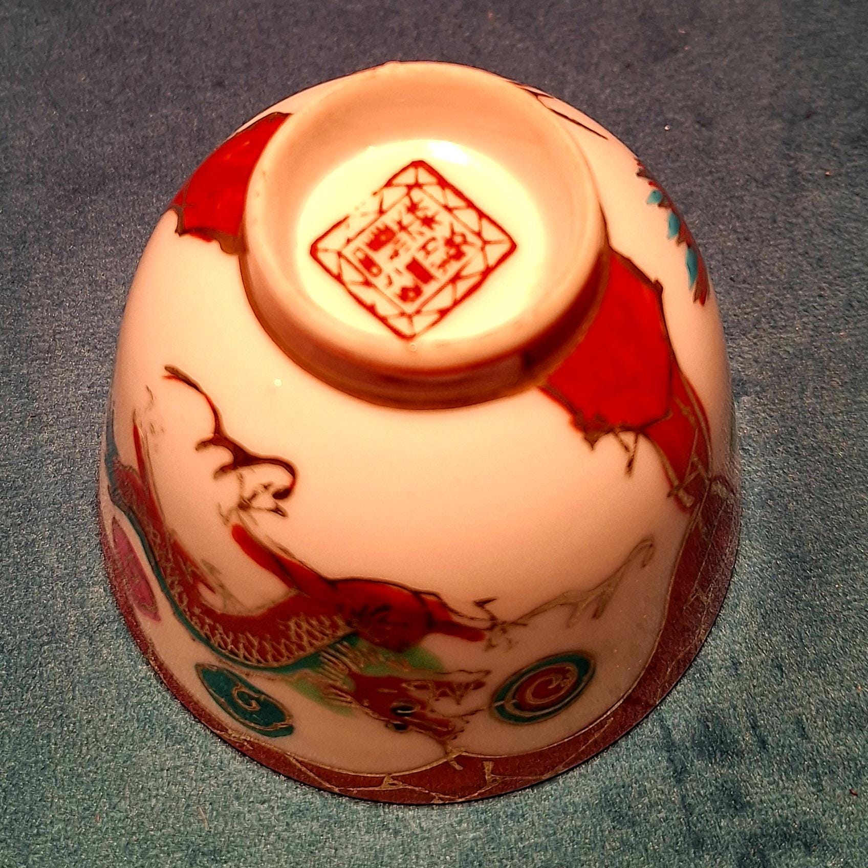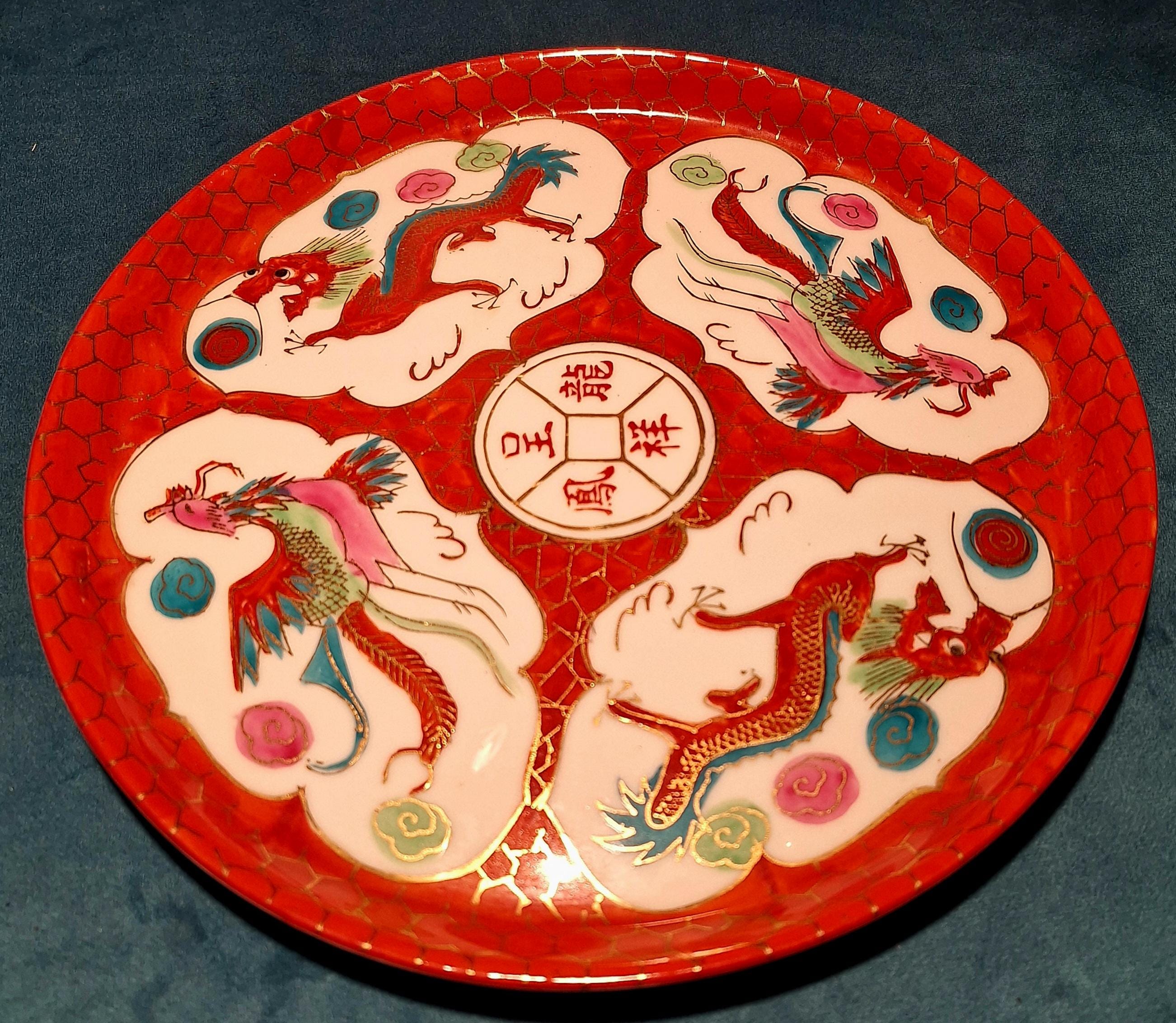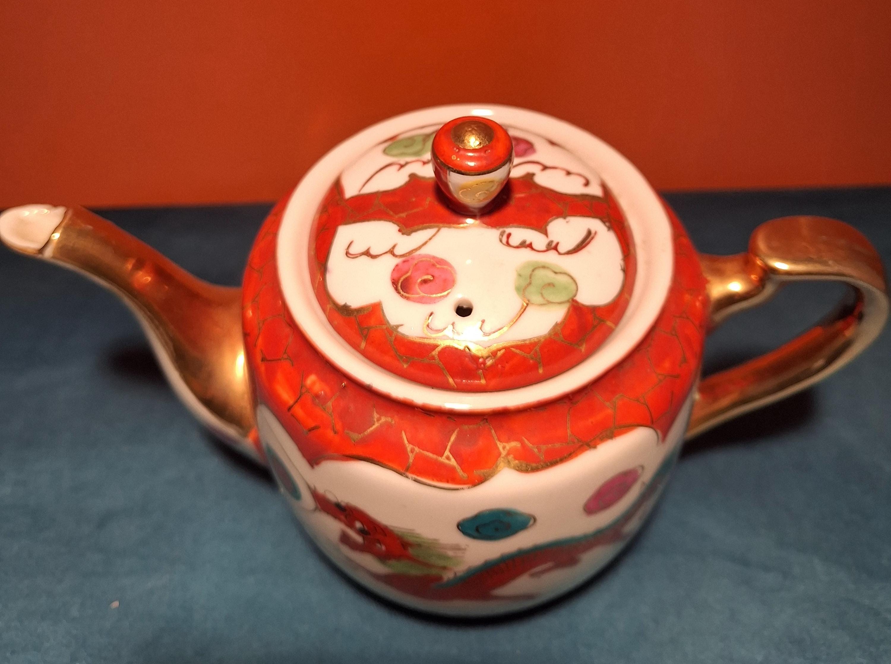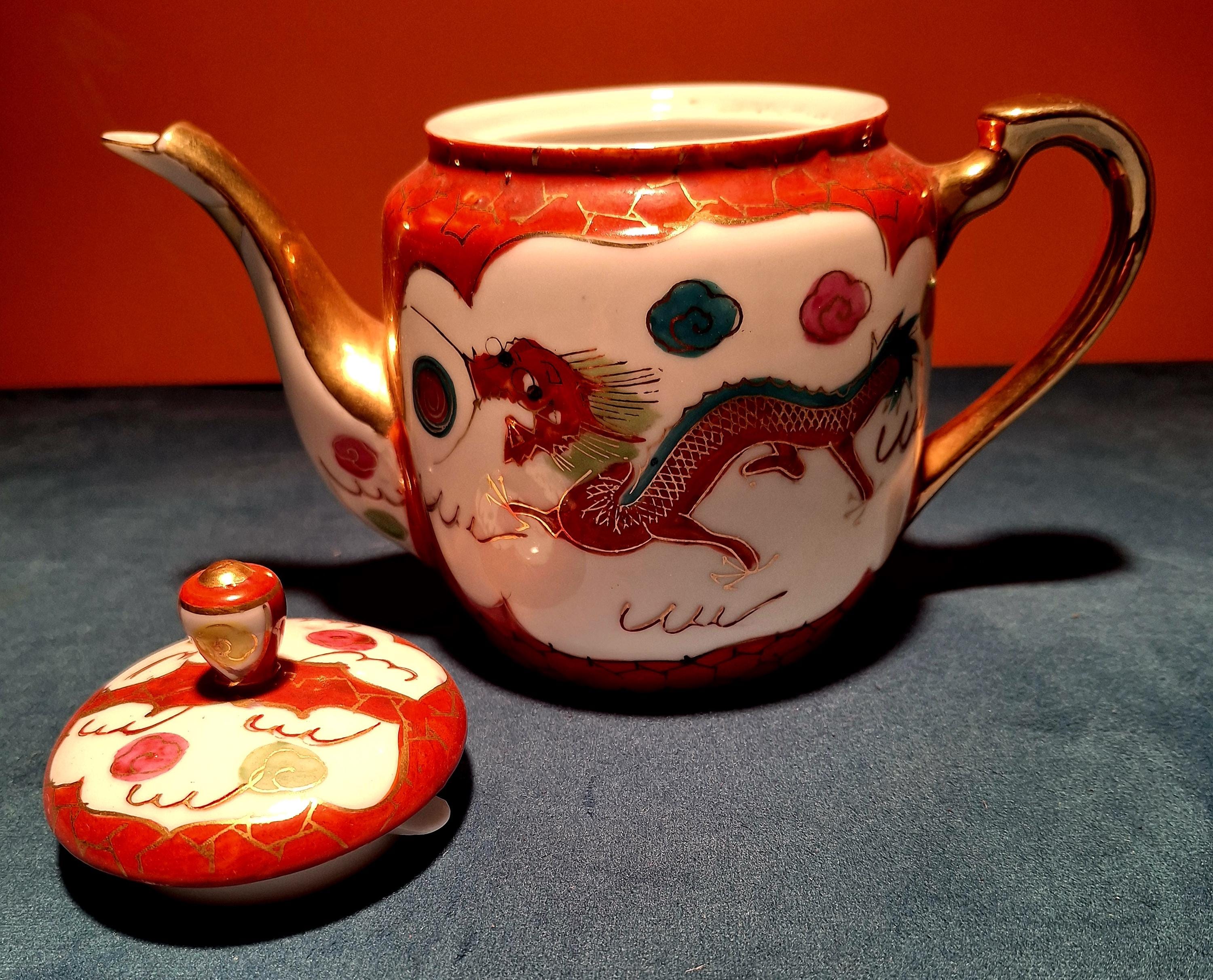 1940 Chinese porcelain tea set with Red dragon and Phoenix with 22 karat gold.