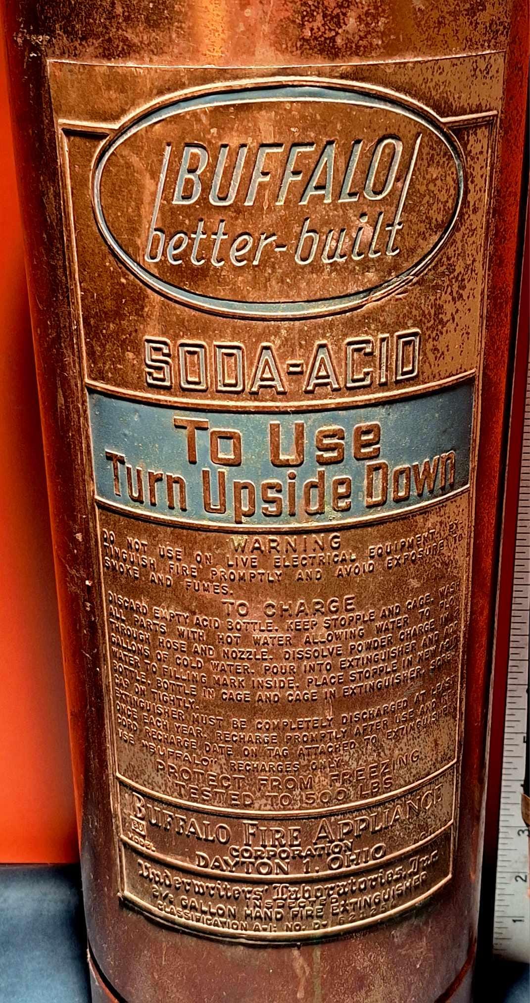 Vintage Buffalo Better Built Fire Extinguisher, Copper & Brass Casing Antique 24 3/8" high