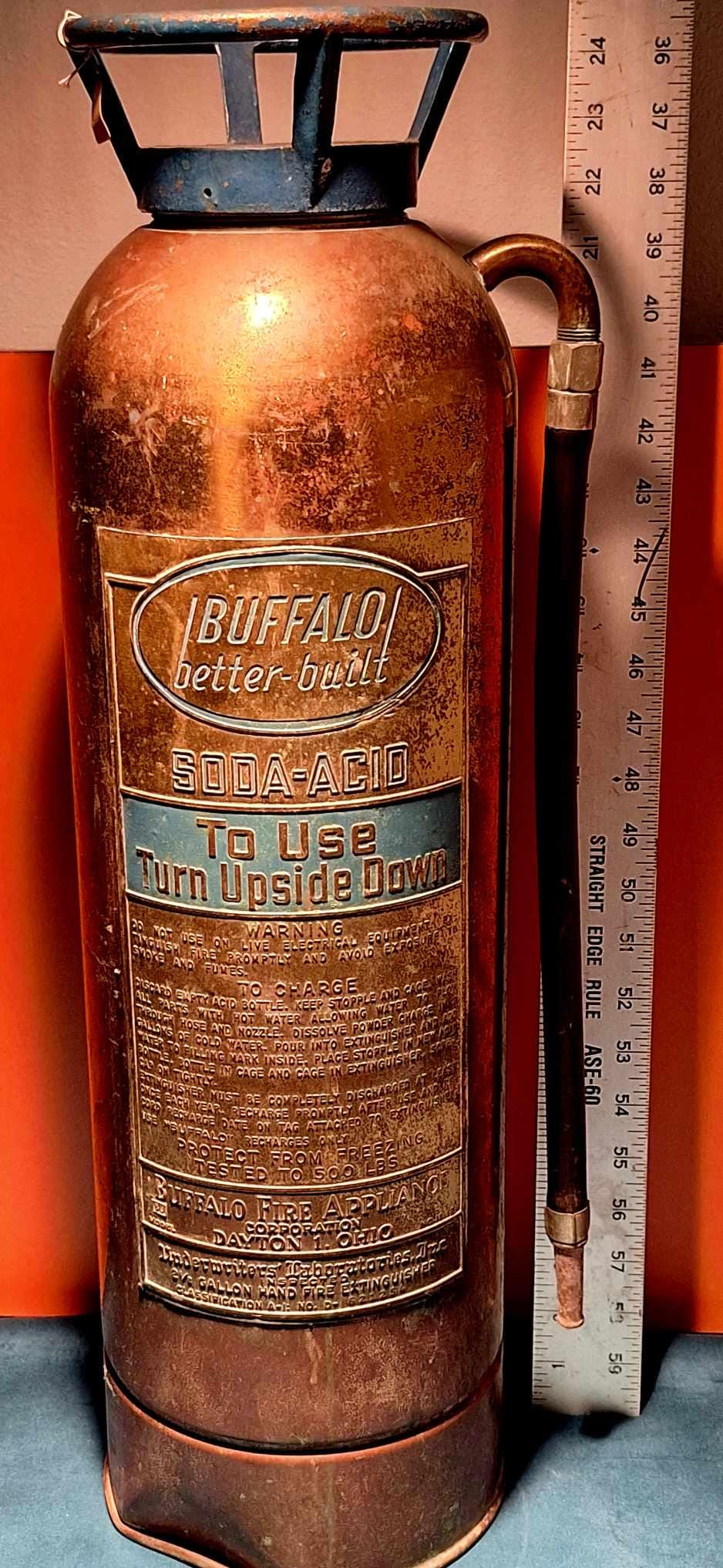 Vintage Buffalo Fire Extinguiser Brass & Copper 24 3/8" high