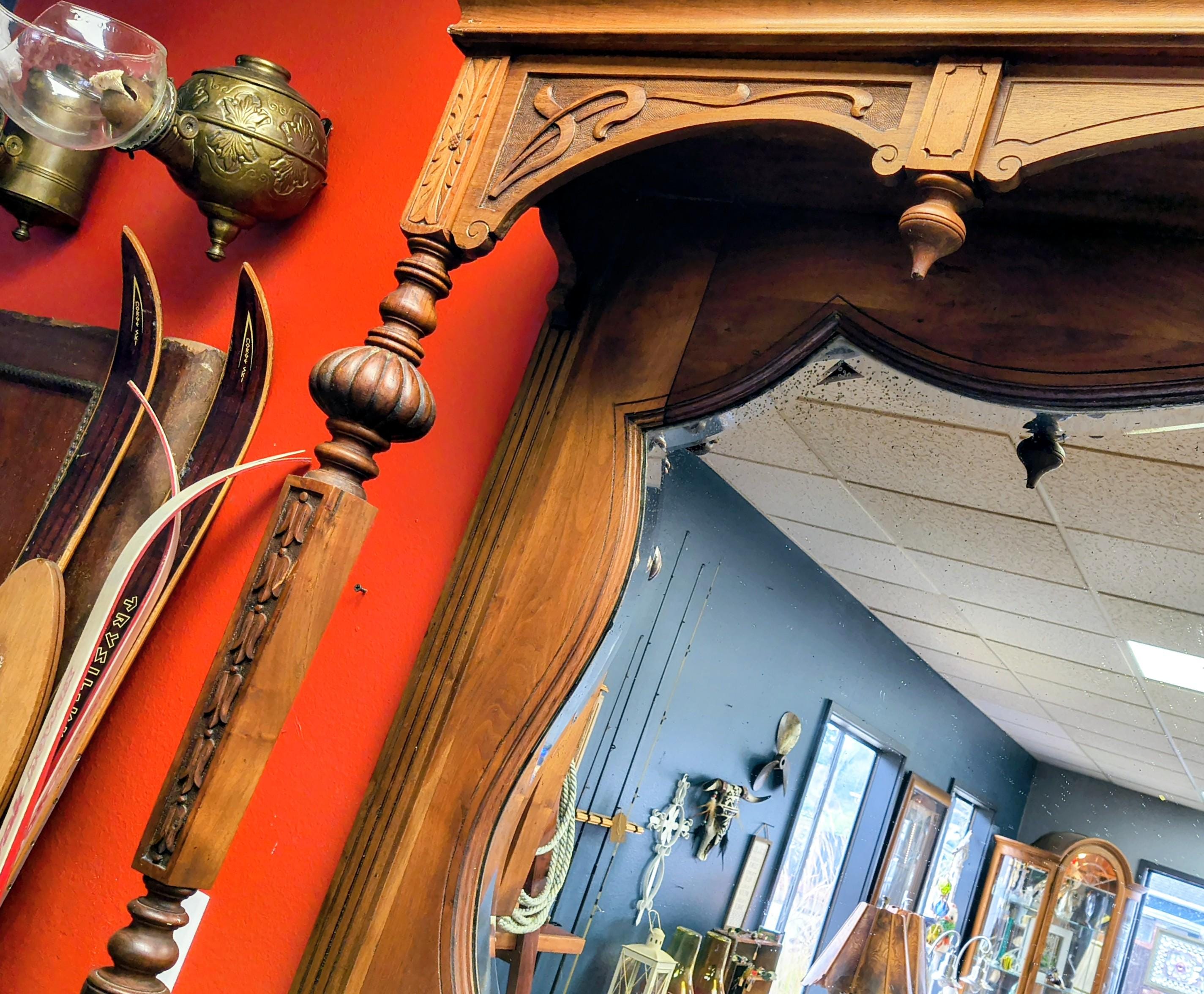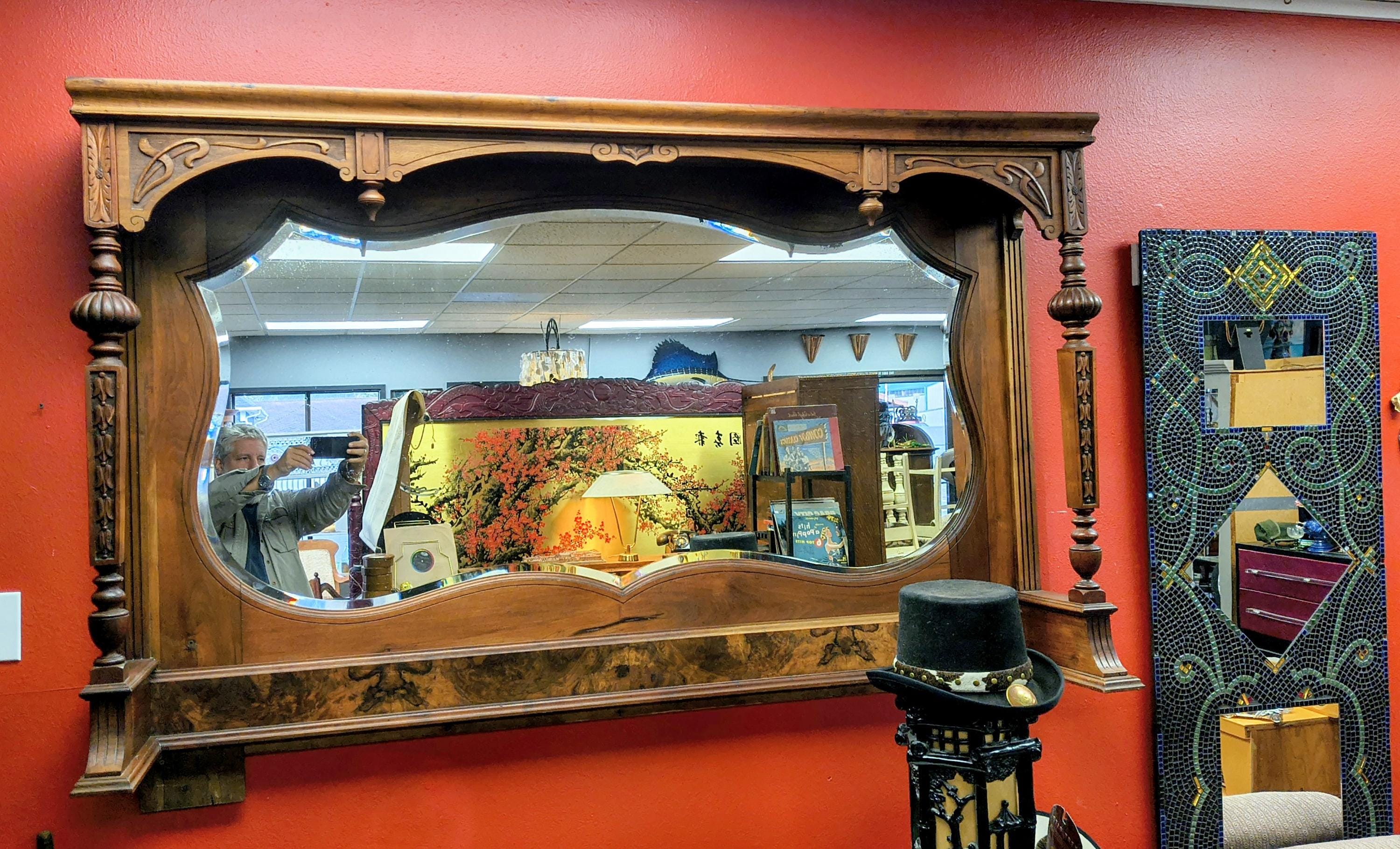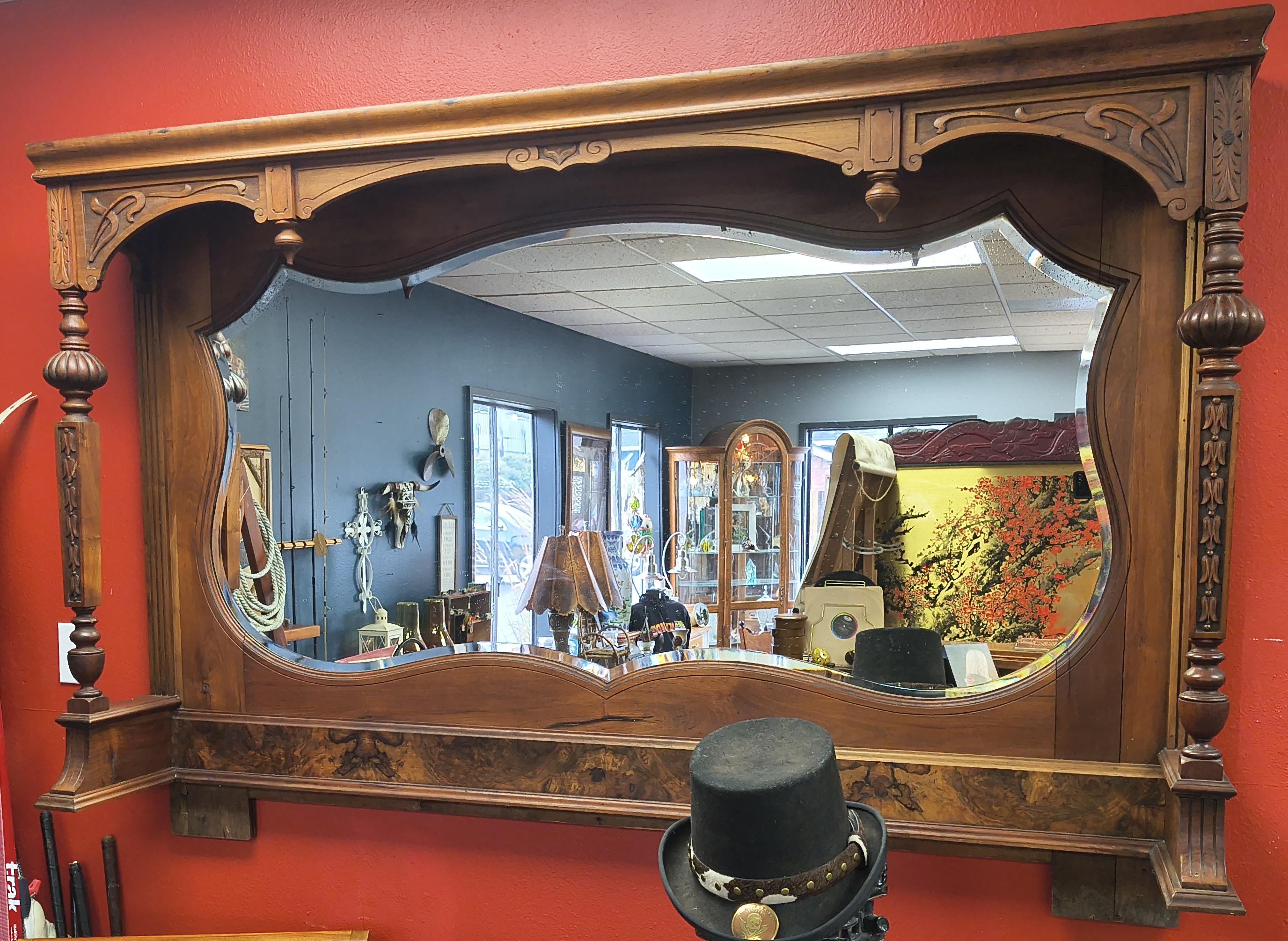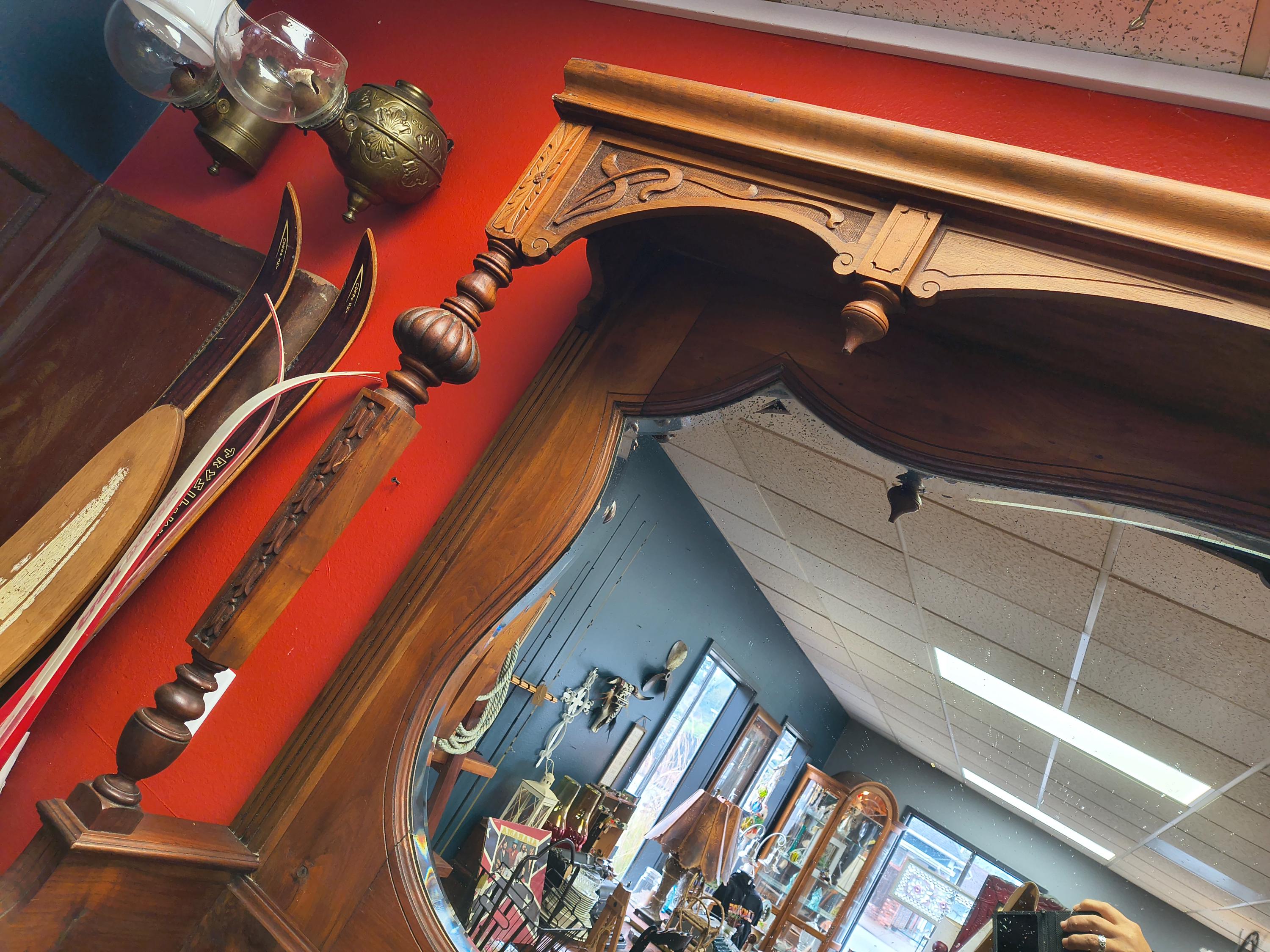 Very unique beveled mirror wall piece, bar back, Hutch accent.
