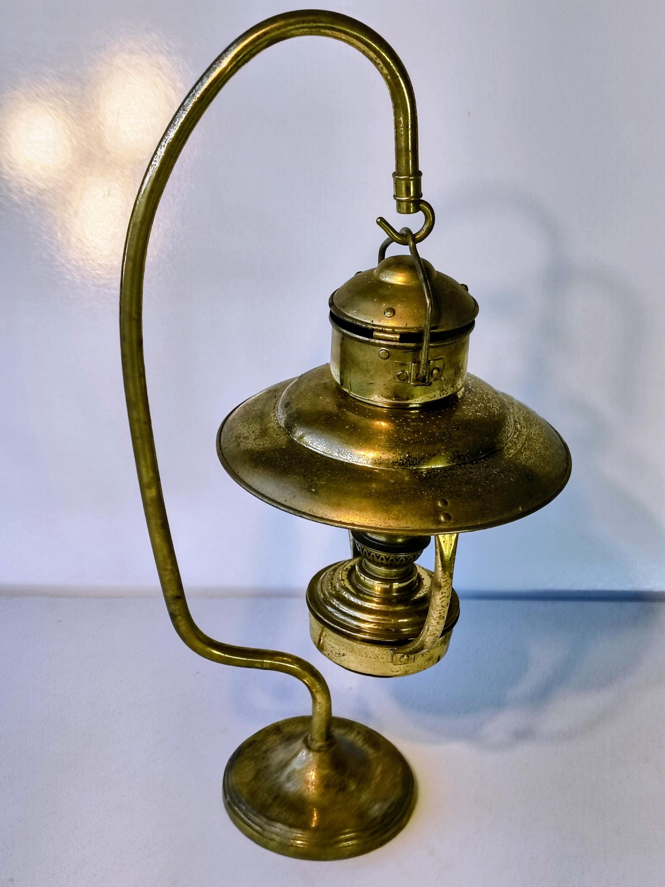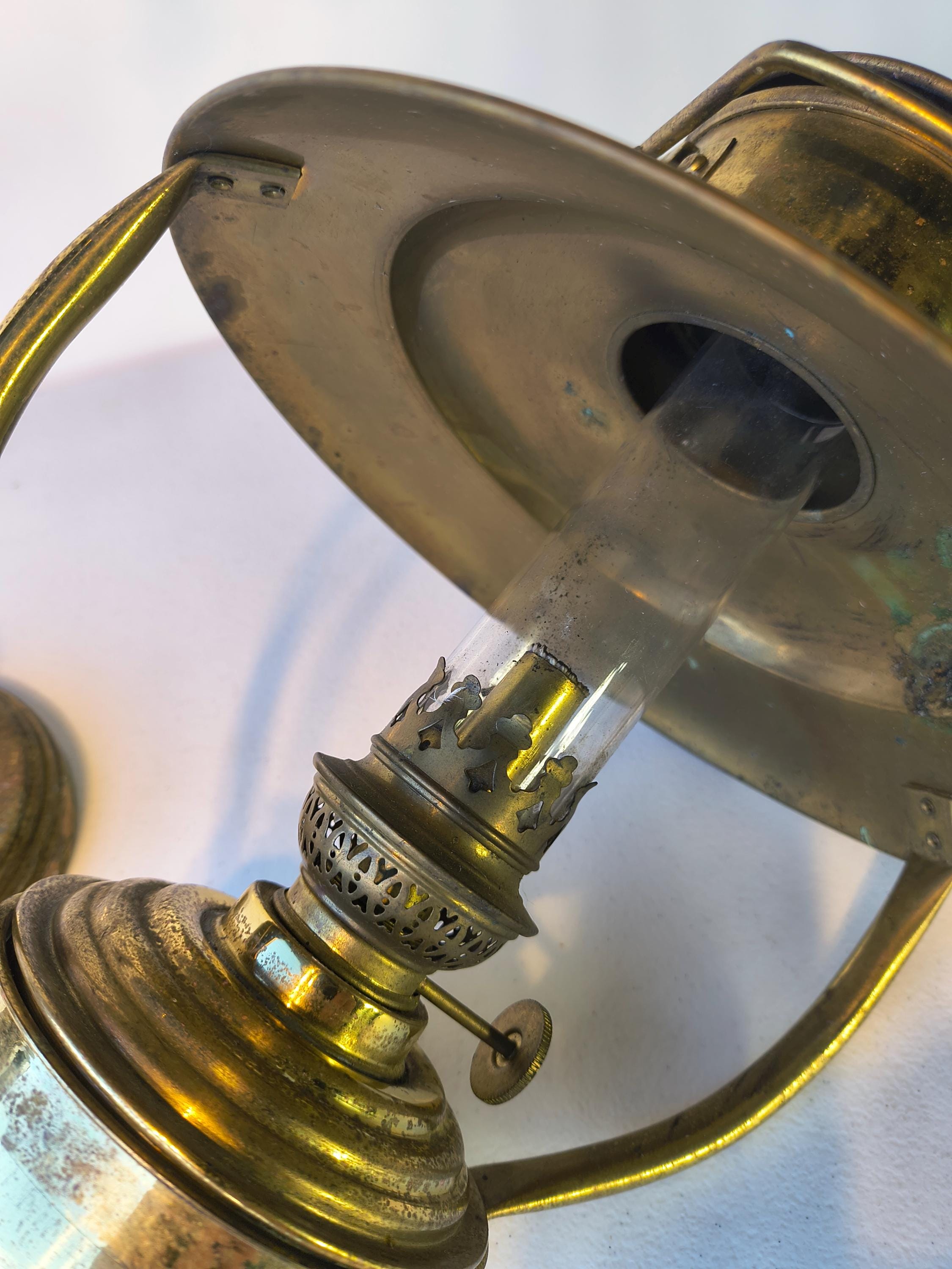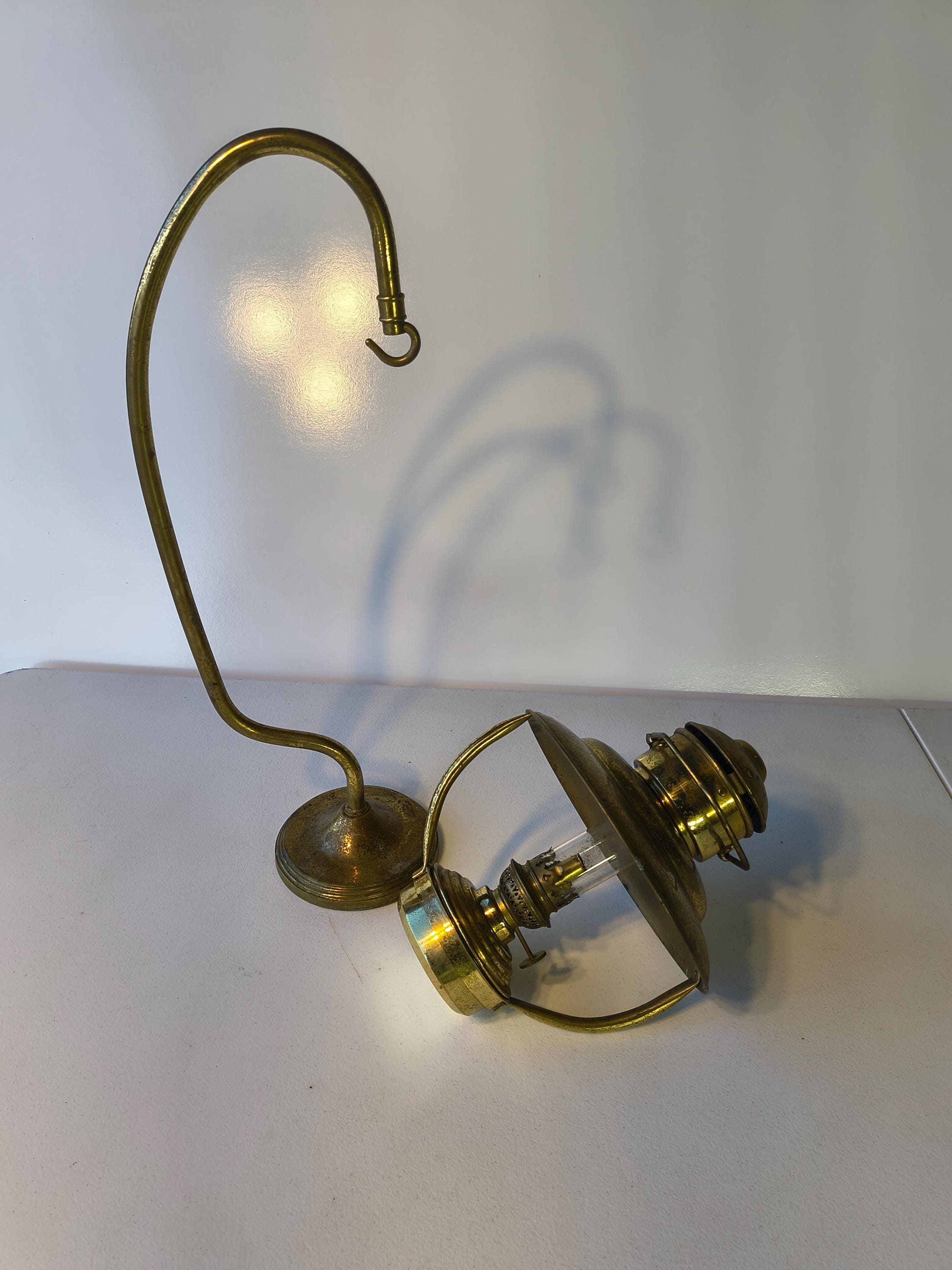 Brass Nautical vintage oil lamp by Gaudard. Made in France. Fully functional, nice wick, clear lens, funny adjustable complete with hangar, reservoir, quick, flute, and housing.
