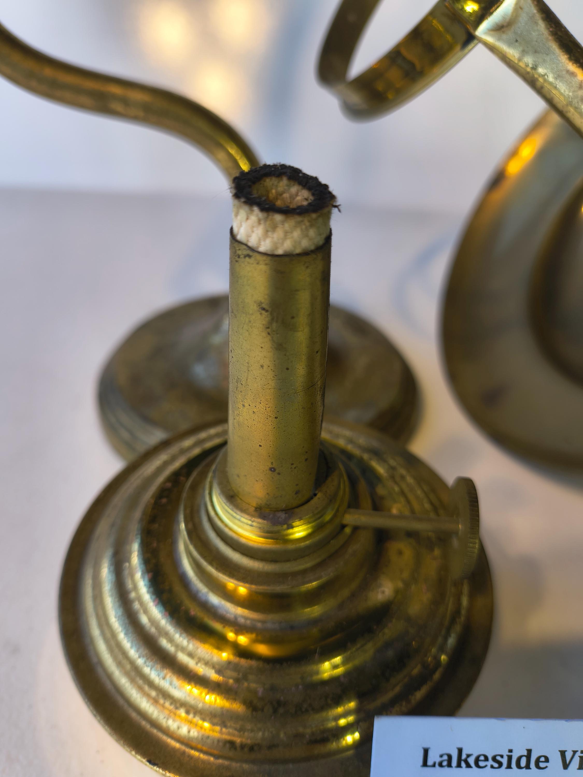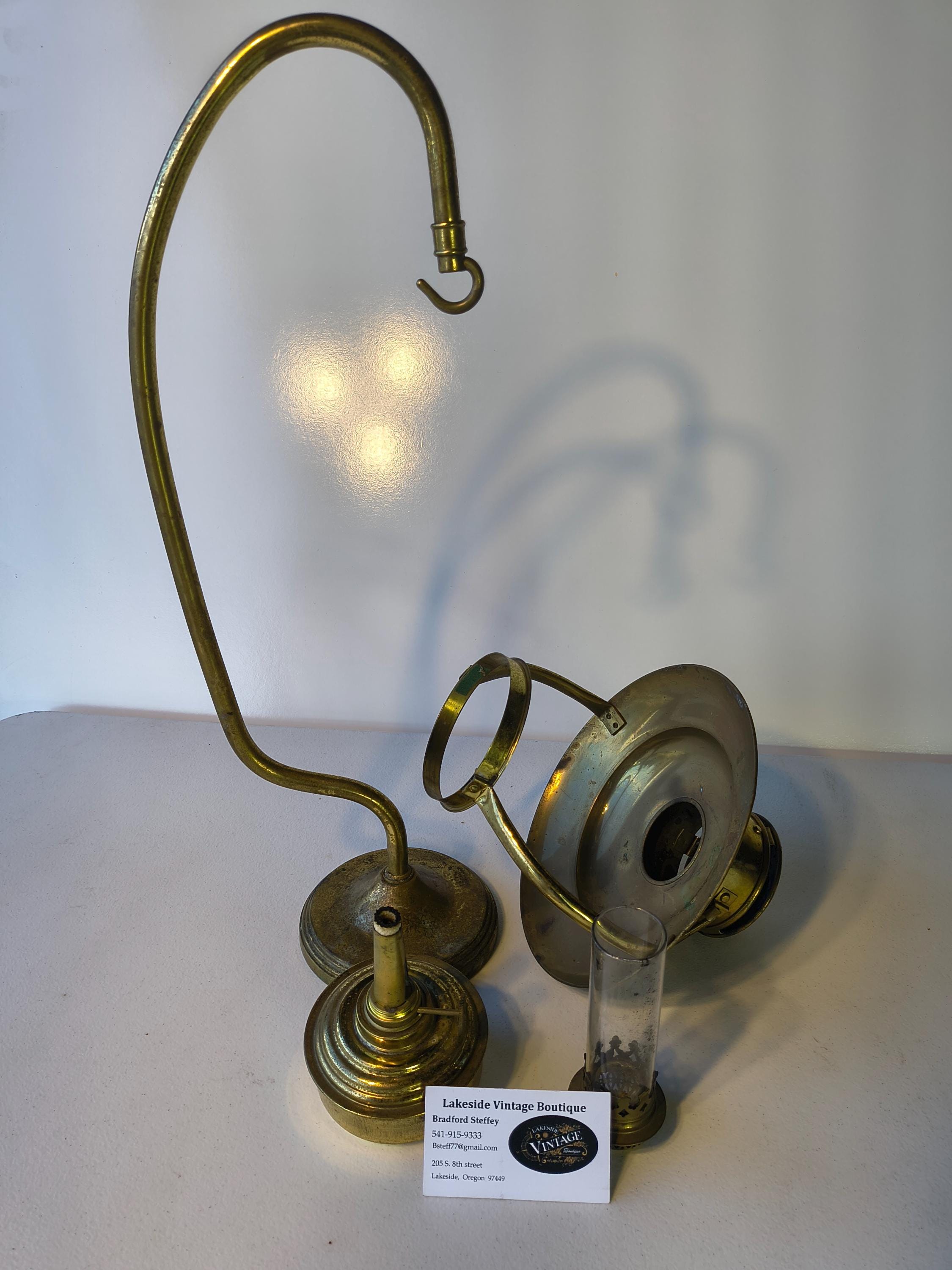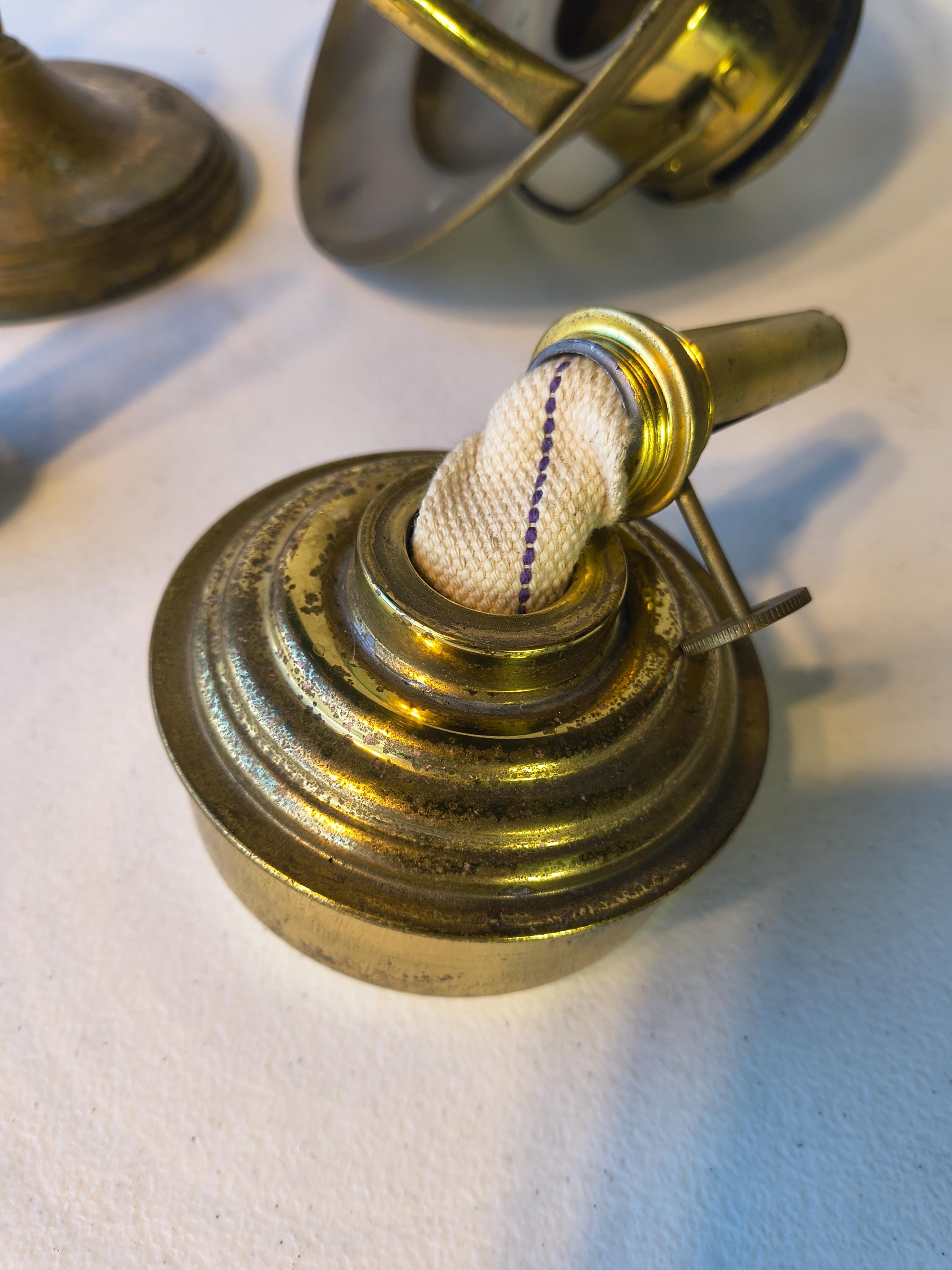 Brass Nautical vintage oil lamp by Gaudard. Made in France. Fully functional, nice wick, clear lens, funny adjustable complete with hangar, reservoir, quick, flute, and housing.