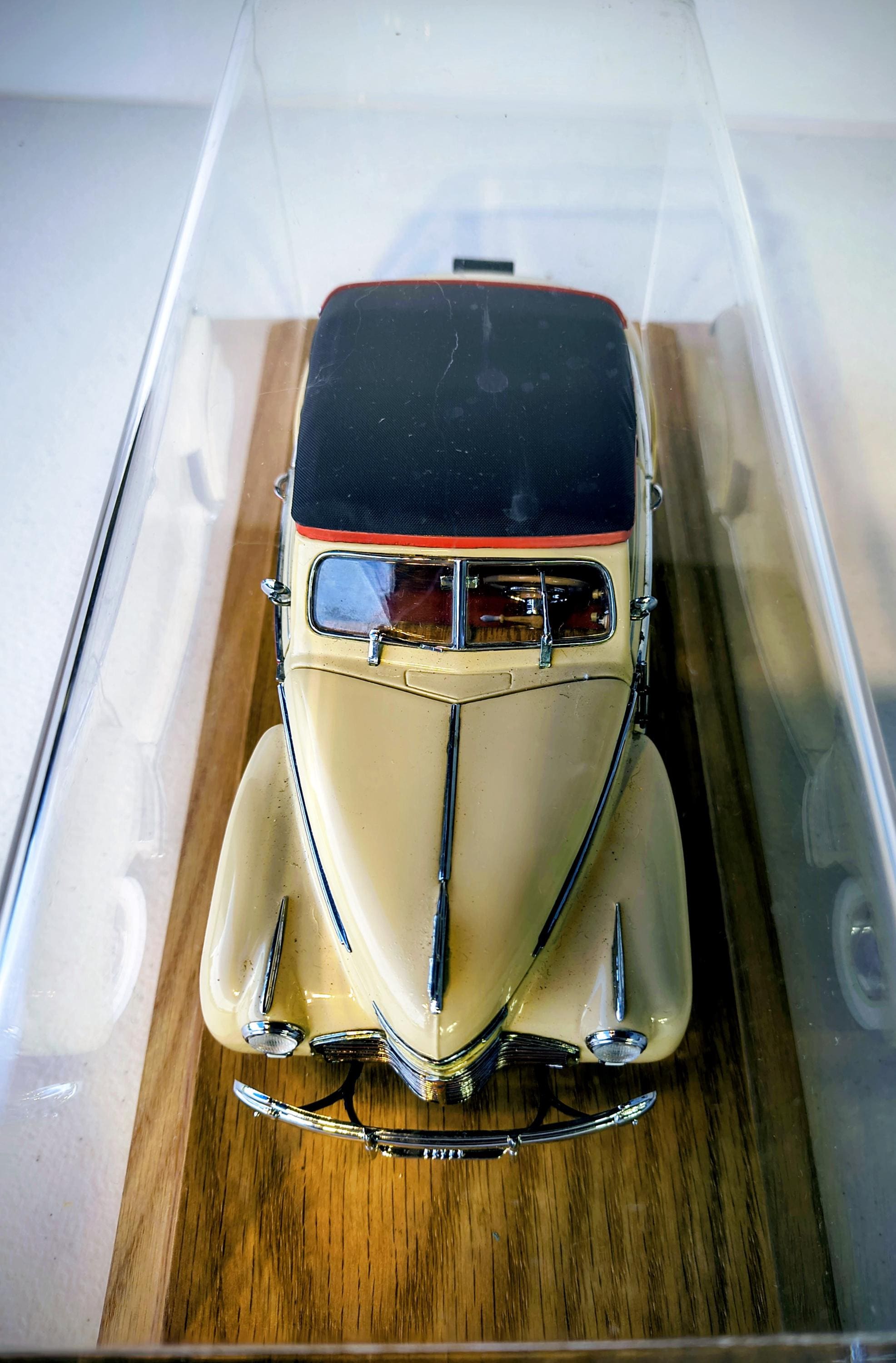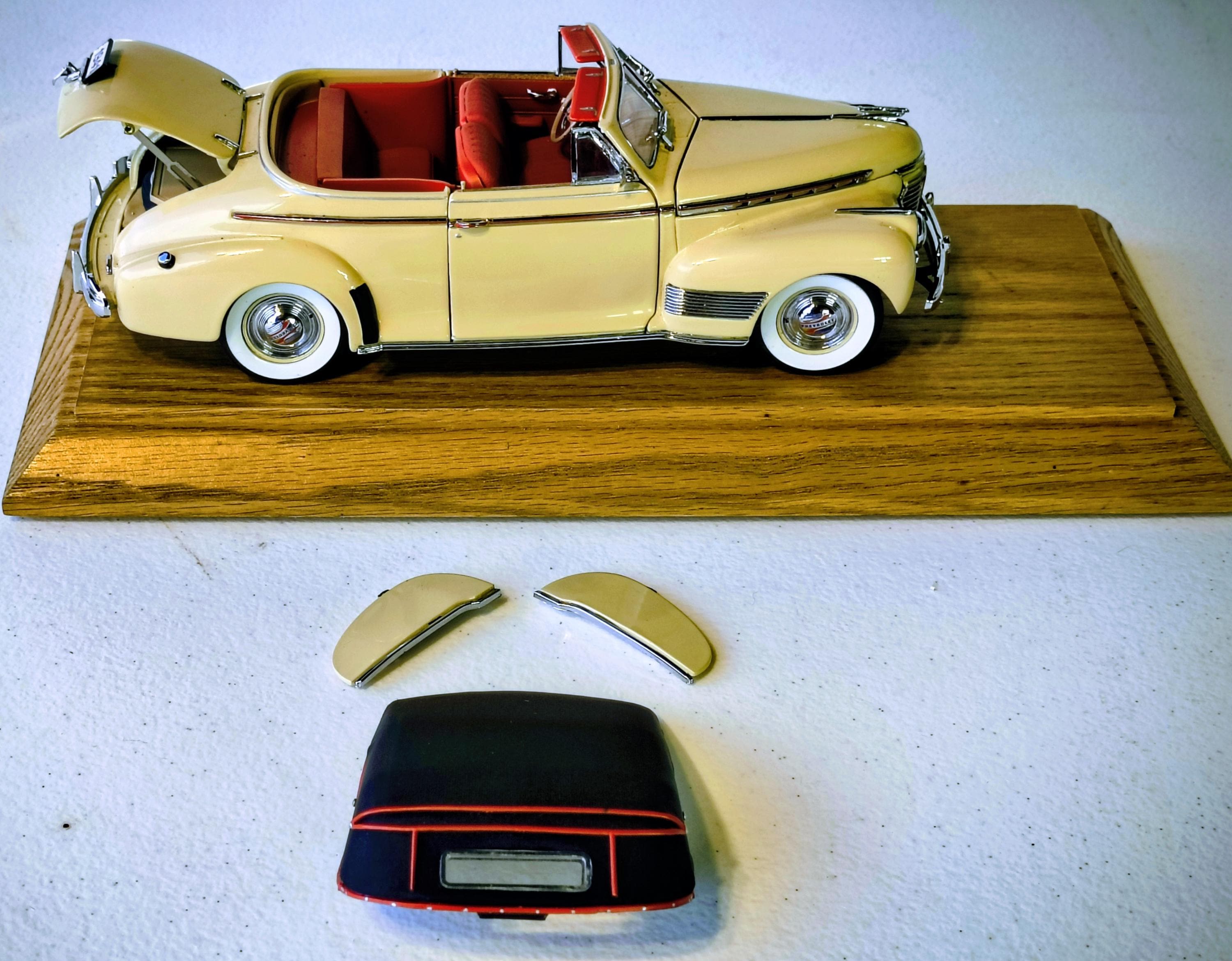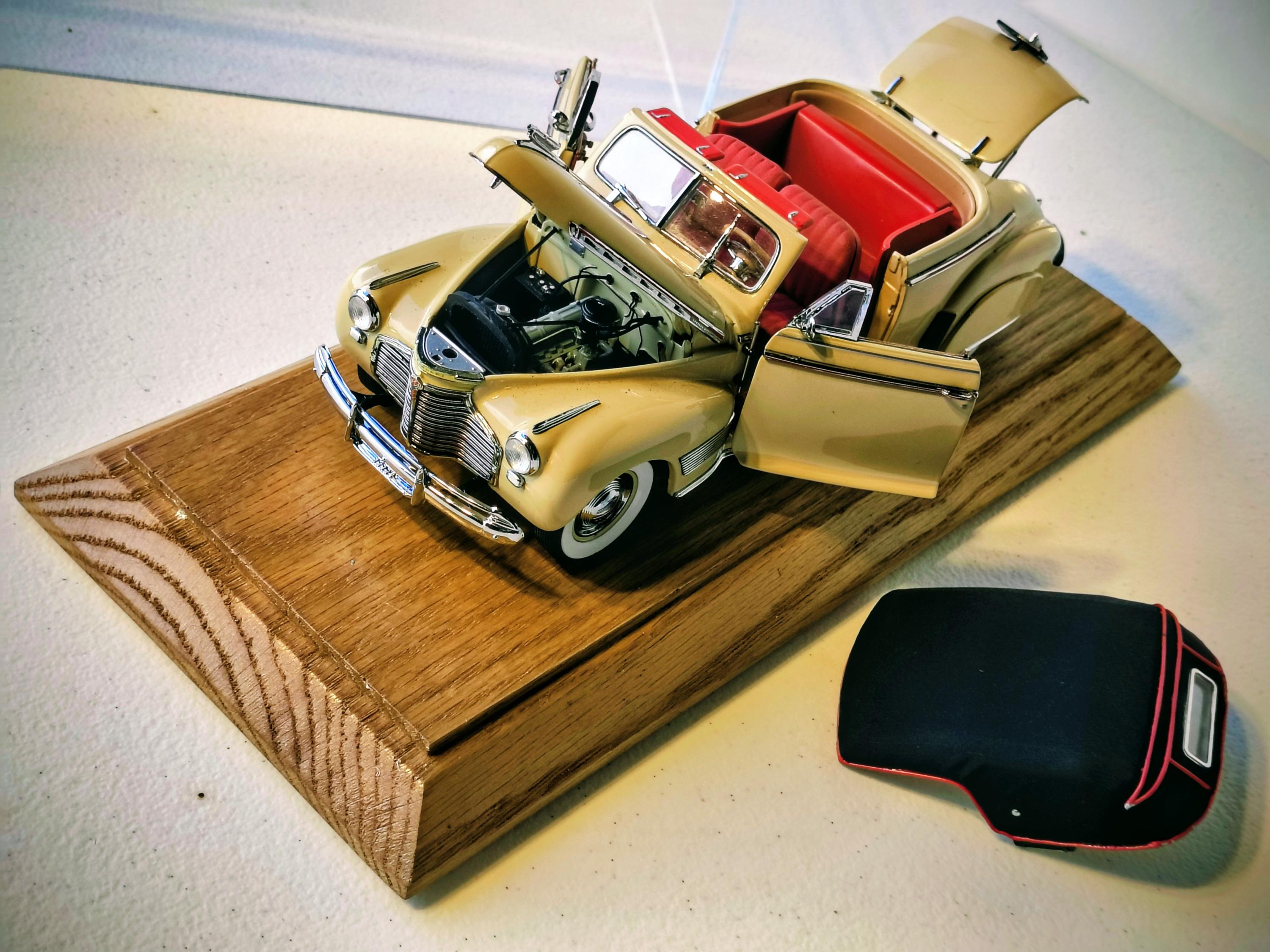 Danbury Mint 1941 Chevrolet Special Deluxe is a highly detailed 1:24 scale diecast model replica of the classic pre-WWII American automobile, produced by the renowned Danbury Mint. Additional solid oak base with clear acrylic cover custom made to showcase this magnificent creation.