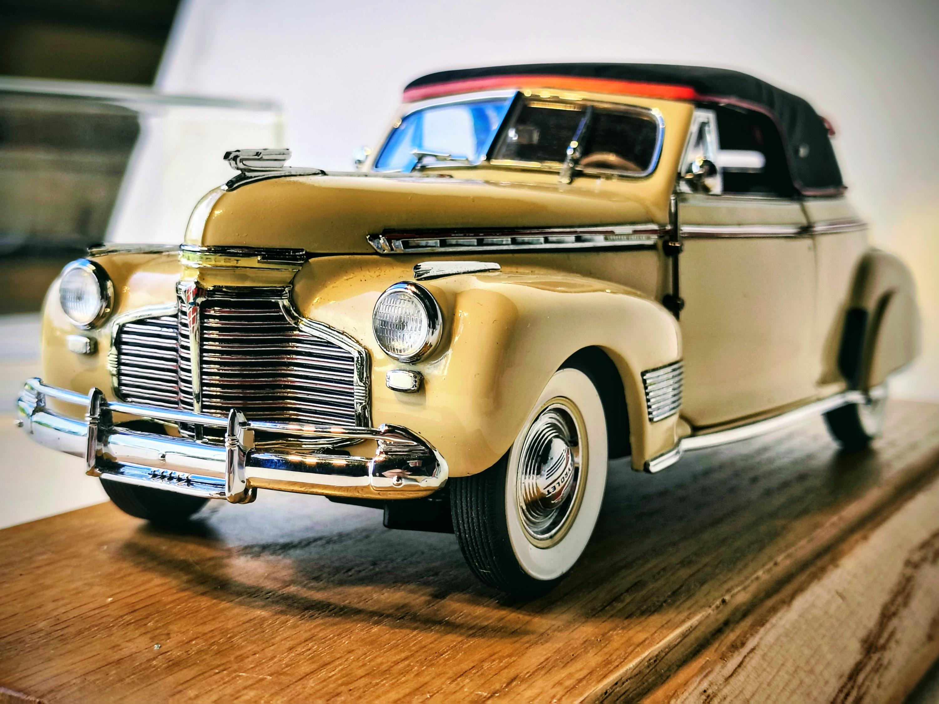 Known for their precision engineering and limited-edition runs, these models are collector-grade items rather than toys, featuring diecast metal construction with plastic accents, opening doors, detailed interiors, realistic engine bays, and chrome detailing. The 1941 Special Deluxe line captures the elegance of Chevrolet's wartime-era design, including iconic elements like the front grille, whitewall tires, and convertible or coupe body styles. Variants include colors such as Cameo Cream, Ruby Maroon, and Maple Brown, with limited editions (e.g., 5,000 units for some coupes and wagons).