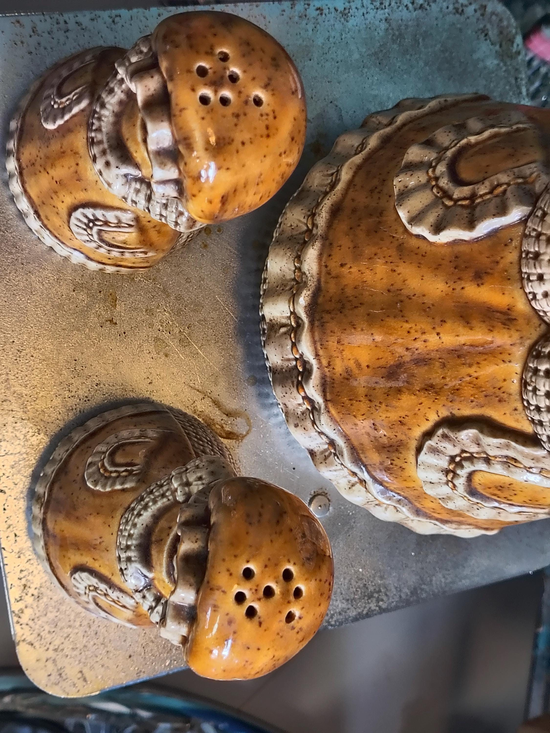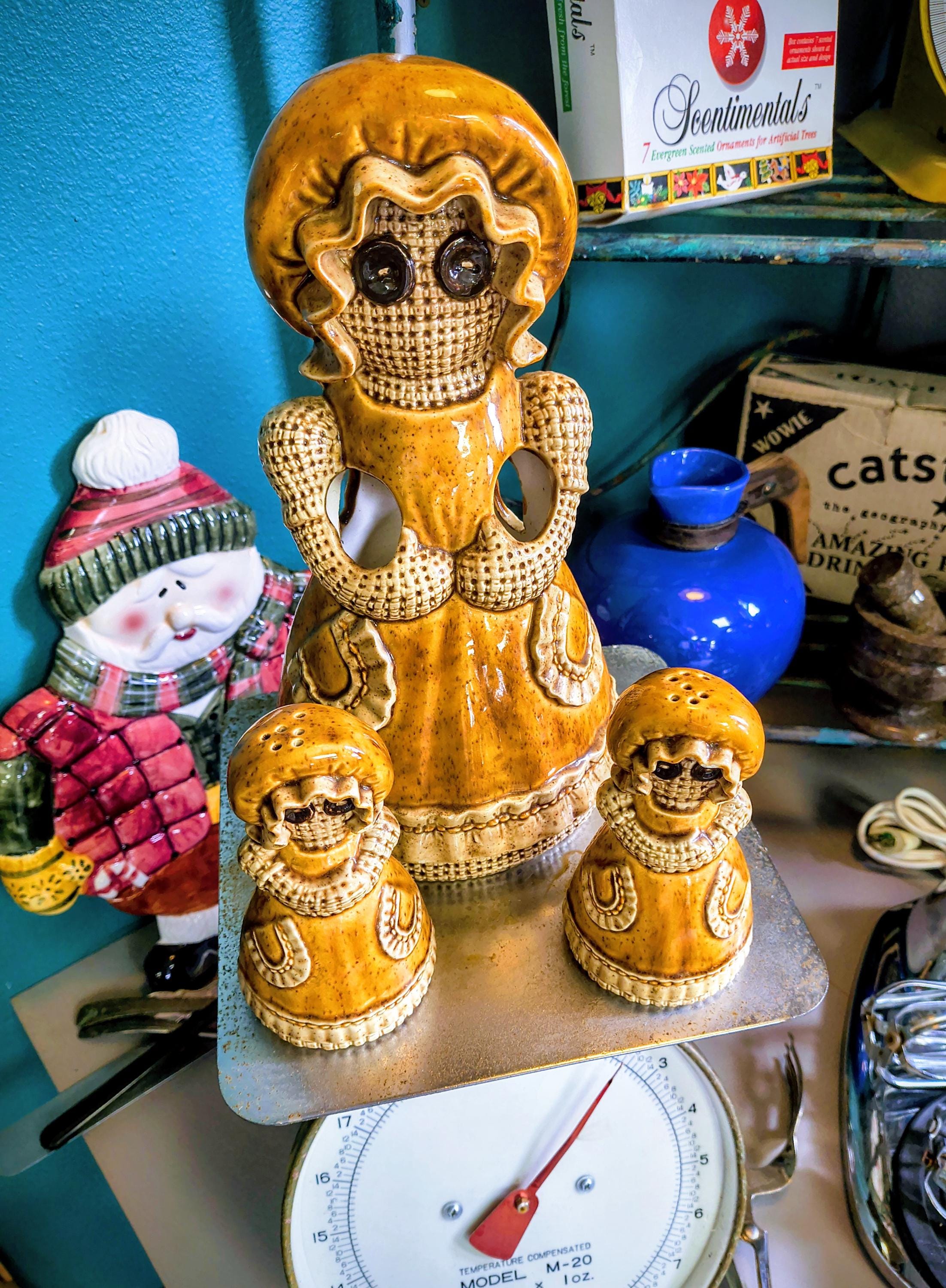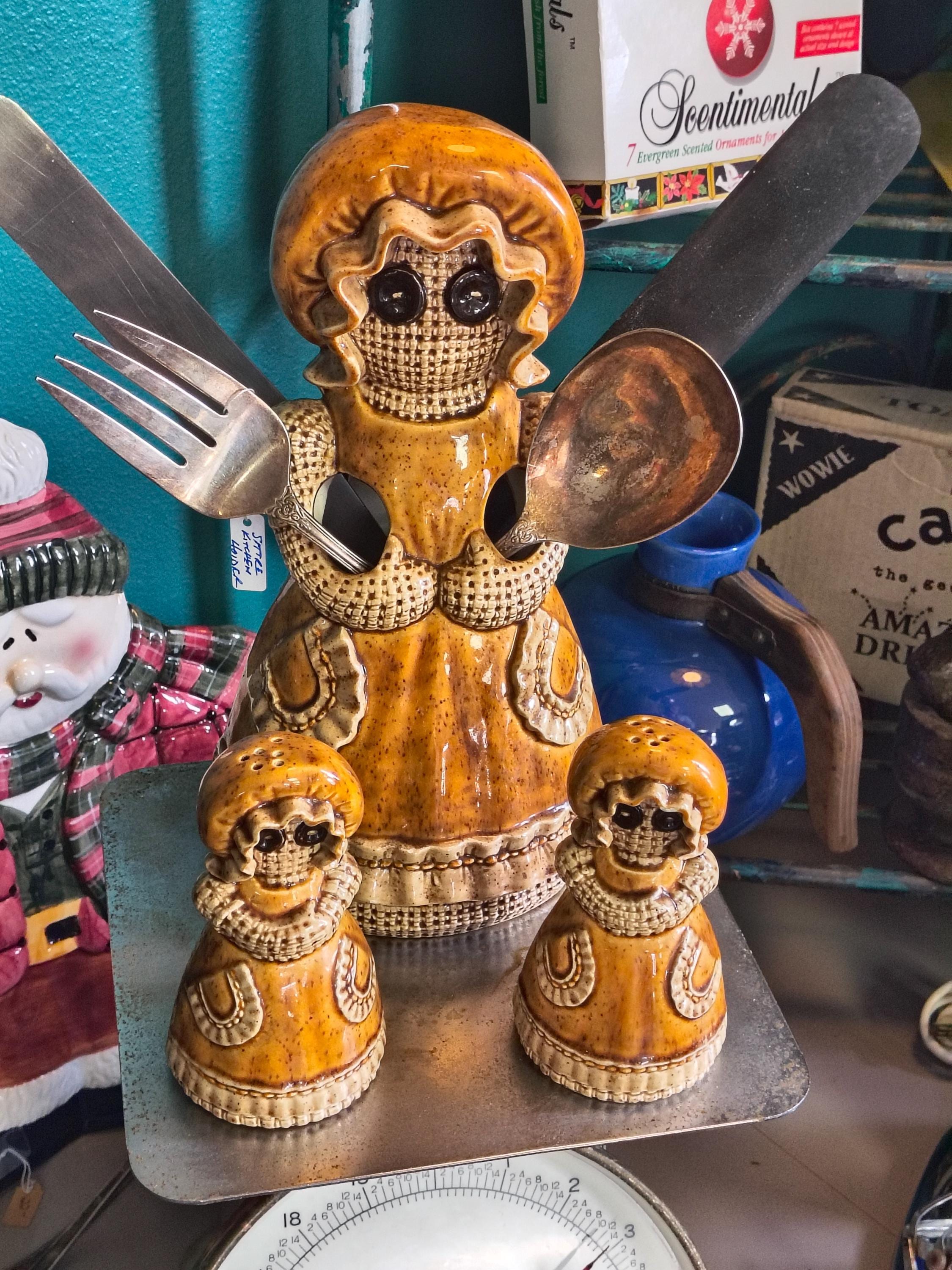 1970's Sittre ceramic button eye utensil holder with two salt and pepper shakers. 3 PCs.