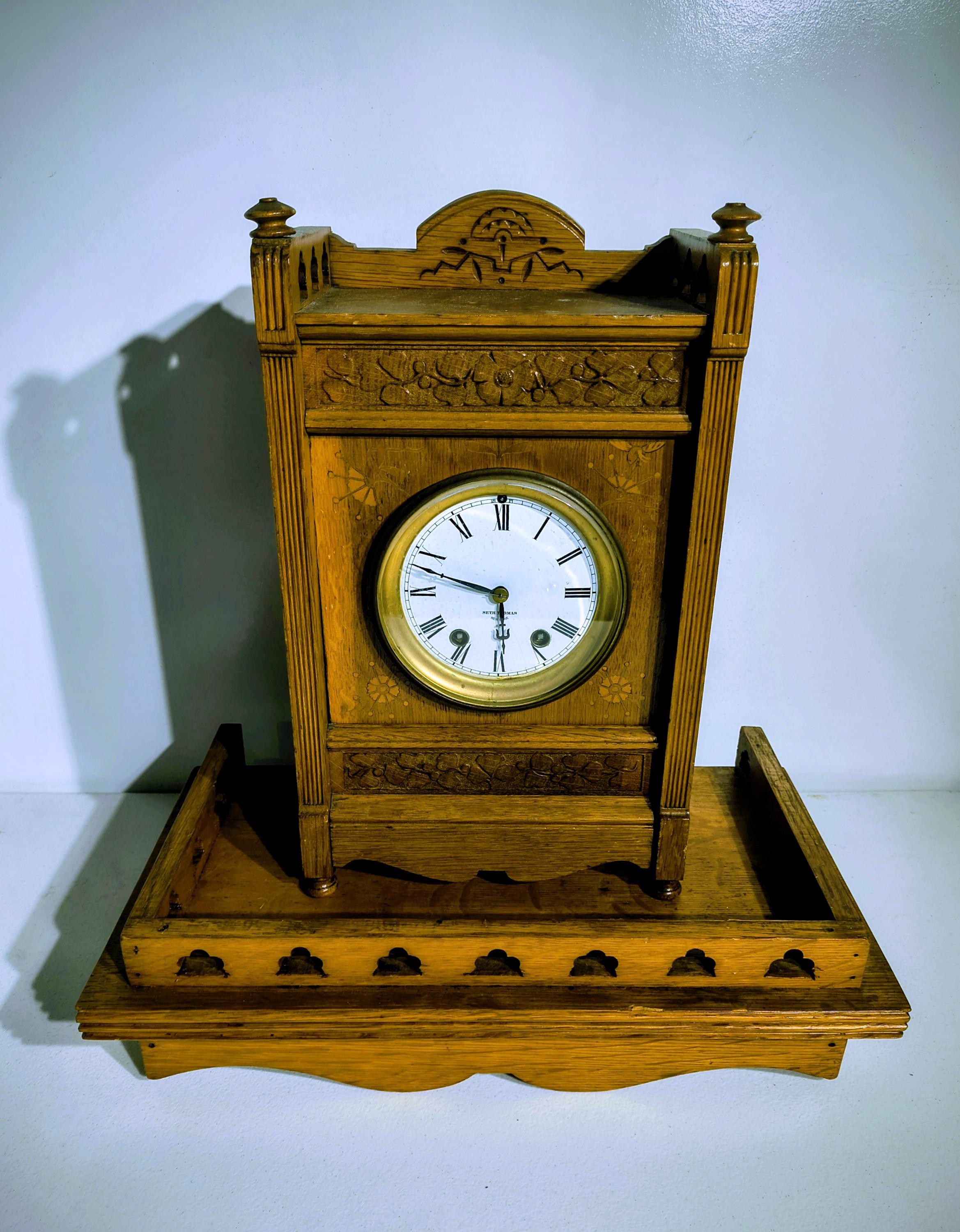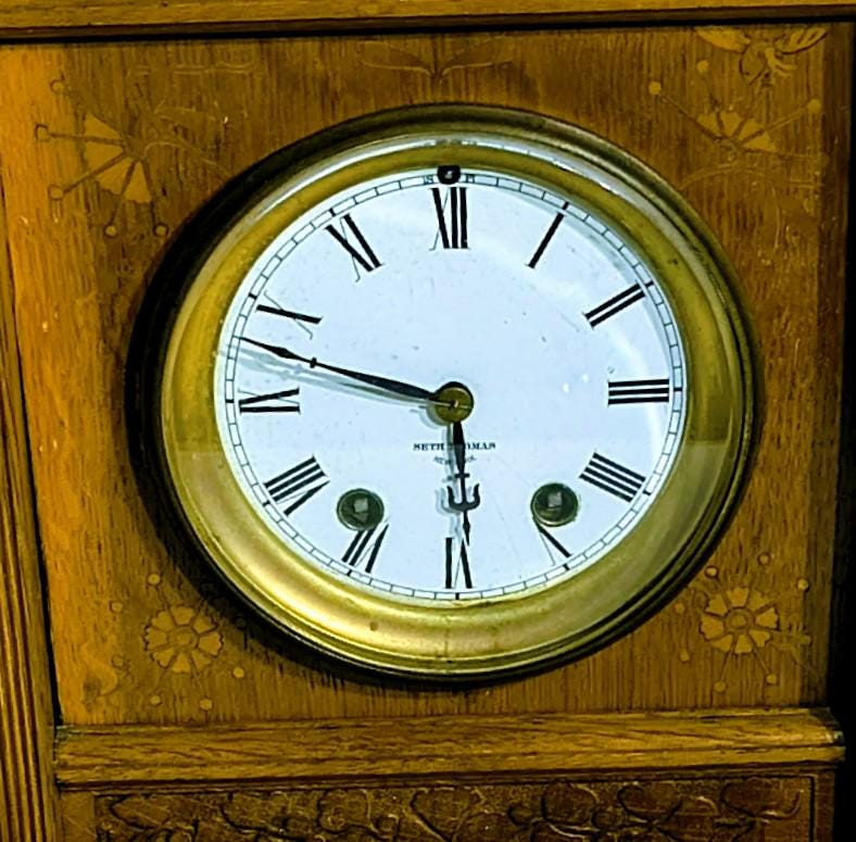 Gorgeous Tiger oak cabinet, Roman numeral face, articulating,magnified lens.